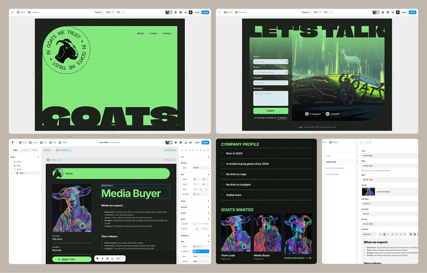 Tweaked the theme to match the GOATS energy — added custom contact form, built out job listings, and polished the layout for a sharper, bolder presence. All set for launch!
