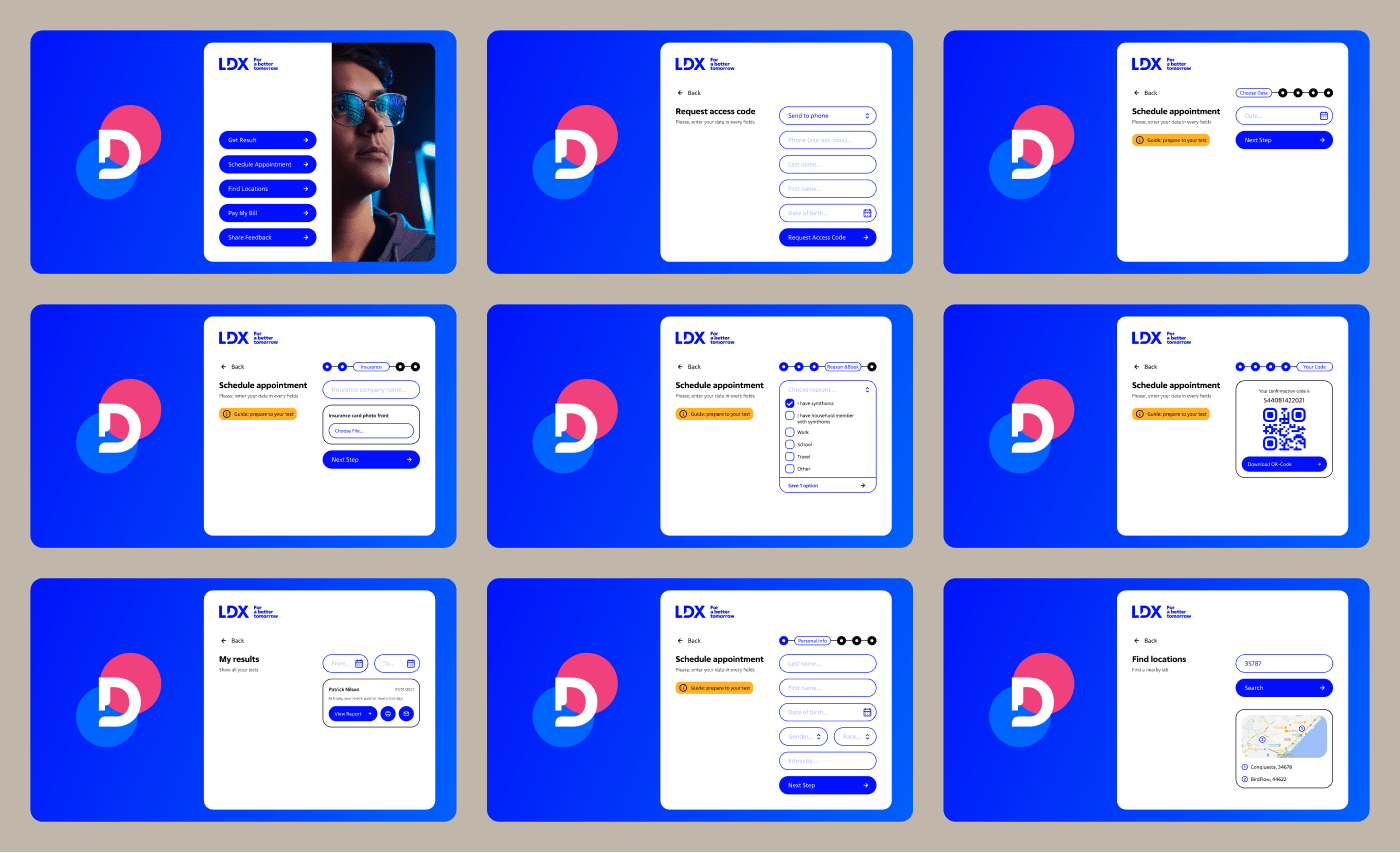 Clean design, zero noise. We mapped out the full flow — from scheduling to QR check-in and viewing results. Straightforward steps, helpful cues, and a touch of friendliness to ease user anxiety.
