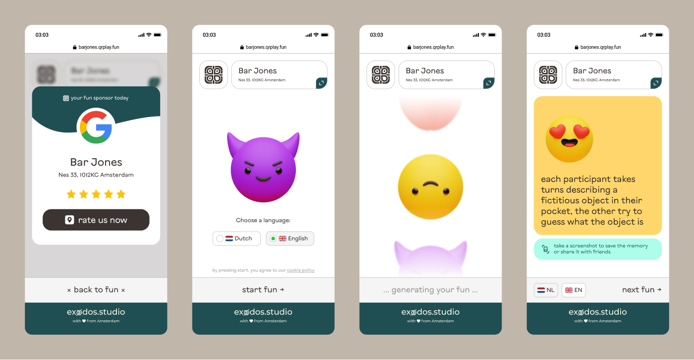 Done! Cleaned up icons, added Dutch/English switcher, improved flow, and wrapped it all in your brand style. Plus, a slick Google review card to boost ratings right at the fun moment